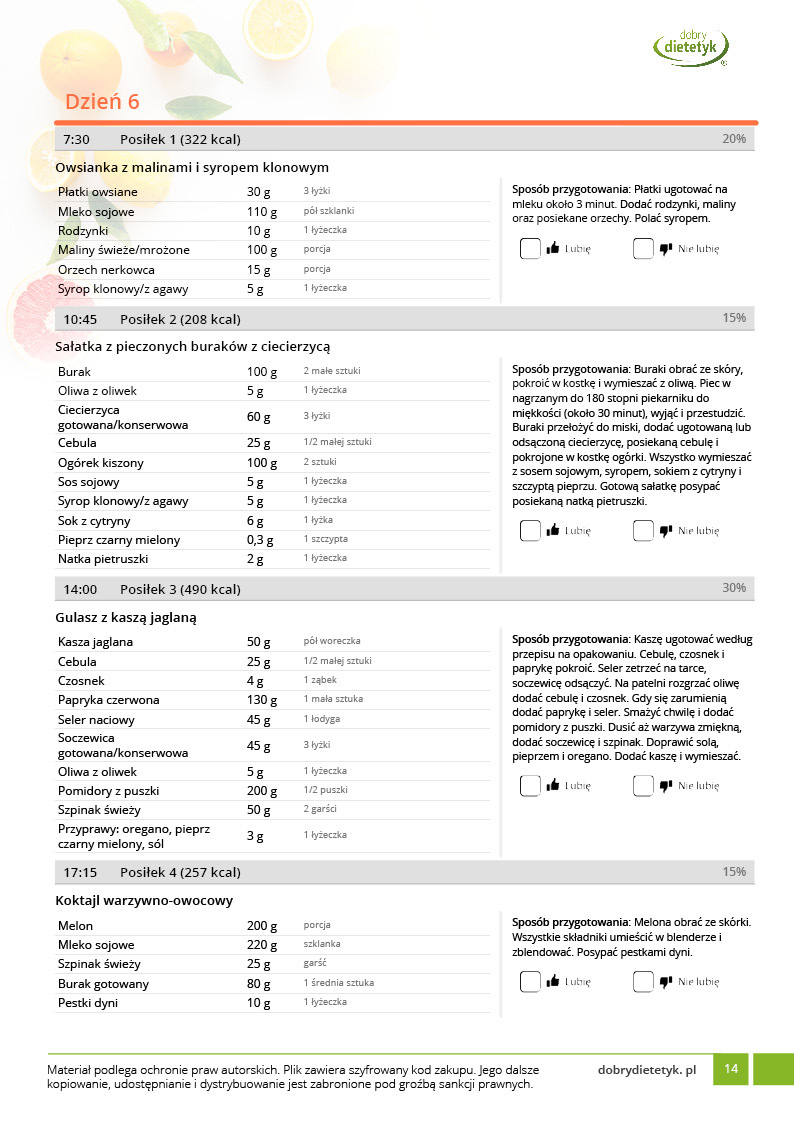 w formie precyzyjnych jadłospisów wielodniowych (na każdy dzień miesiąca jest opracowany osobny jadłospis). Tutaj nie musisz zastanawiać się co zjeść każdego dnia, gdyż będziesz mieć dokładnie wszystko rozplanowane.