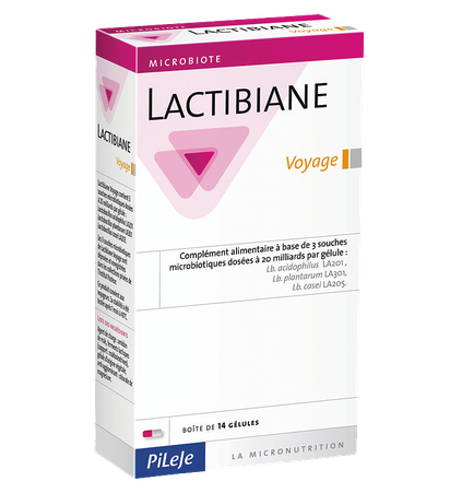 Lactibiane Podróż normalizuje skład flory bakteryjnej jelit. Jego stabilność została przetestowana po upływie miesiąca w 40 st.C. Zalecany dla osób podróżujących, „zmieniających kuchnię”. Pomaga zachować prawidłowe funkcjonowanie układu trawiennego w trakcie wyjazdu. Rekomendowany do stosowania w przypadku infekcji jelitowych (biegunka podróżnych). Suplement diety opracowany na podstawie badań naukowych.Rekomendowany do suplementacji w: