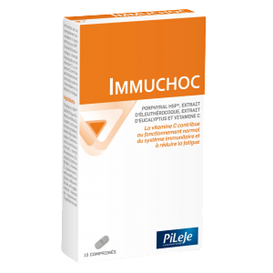 Immuchoc to suplement diety na bazie Porphyralu HSP®, ekstraktu z żeń-szenia syberyjskiego, ekstraktu z eukaliptusa i witaminy C. Witamina C przyczynia się do prawidłowego funkcjonowania układu odpornościowego i zmniejsza uczucie zmęczenia.Rekomendowany do suplementacji w: