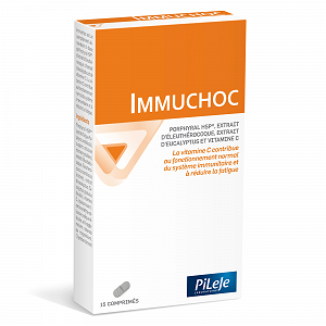 Immuchoc to suplement diety na bazie Porphyralu HSP®, ekstraktu z żeń-szenia syberyjskiego, ekstraktu z eukaliptusa i witaminy C. Witamina C przyczynia się do prawidłowego funkcjonowania układu odpornościowego i zmniejsza uczucie zmęczenia.Rekomendowany do suplementacji w: